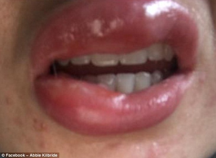 consequência, Abbie Kilbride, de 18 anos, acordou com os lábios queimados e