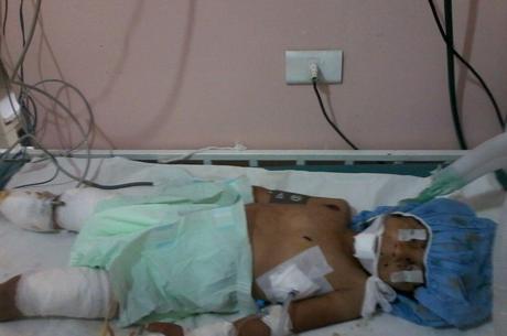 Ela foi internada com vários ferimentos causados por estilhaços em seu abdômen, além de duas pernas quebradas.