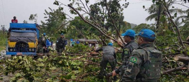 Militares brasileiros tentam abrir estradas para chegar a cidades isoladas por furacão no Haiti